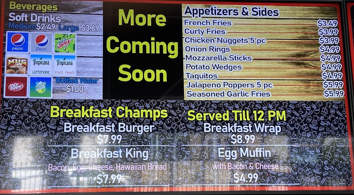 Chopped Ground Beef, Seasoned to perfection, American Cheese, Grilled Onion, Lettuce, Pickles, Special Sauce, & Mustard on a Toasted Soft Roll. -Includes Side of Fry and Choice of Beverage